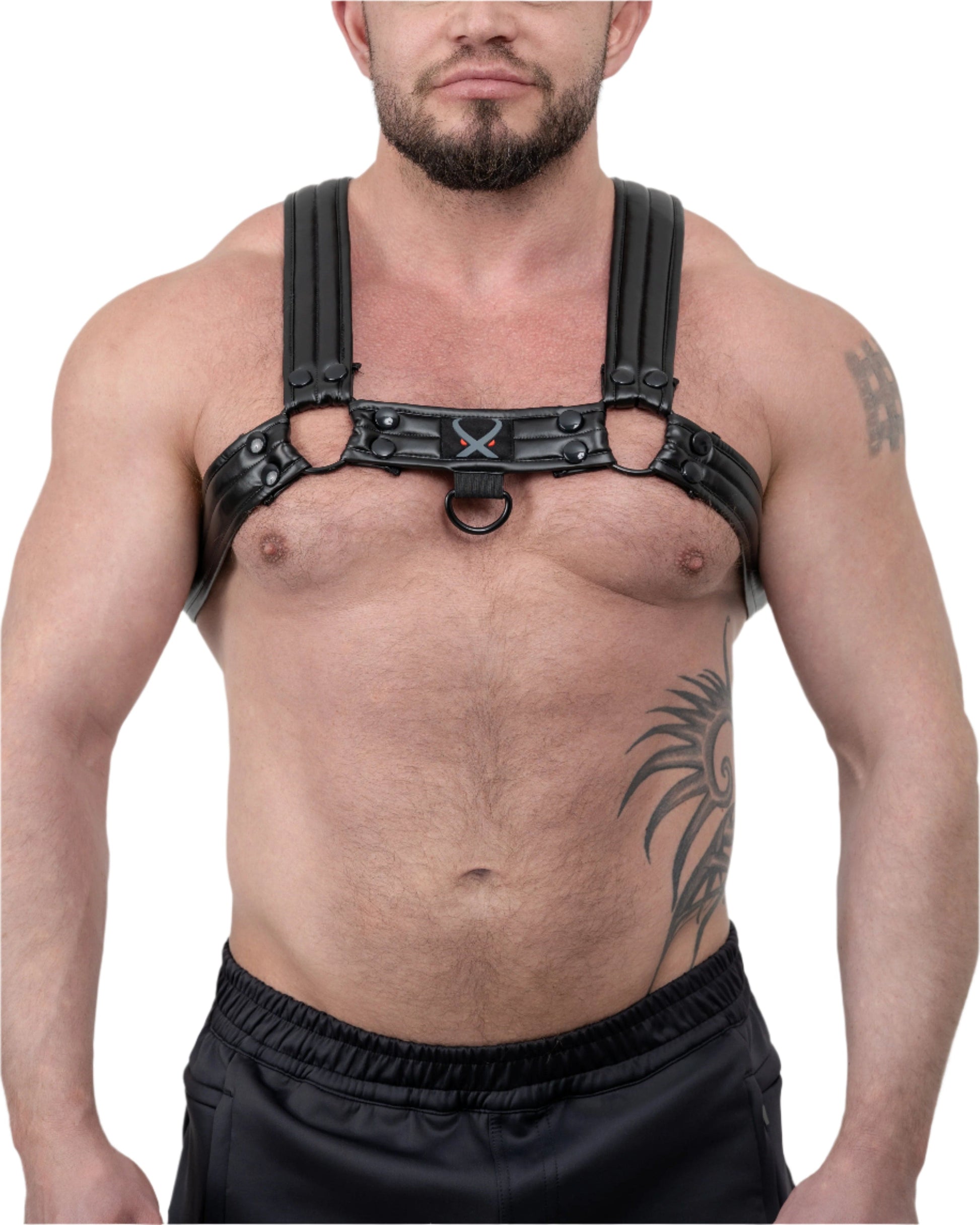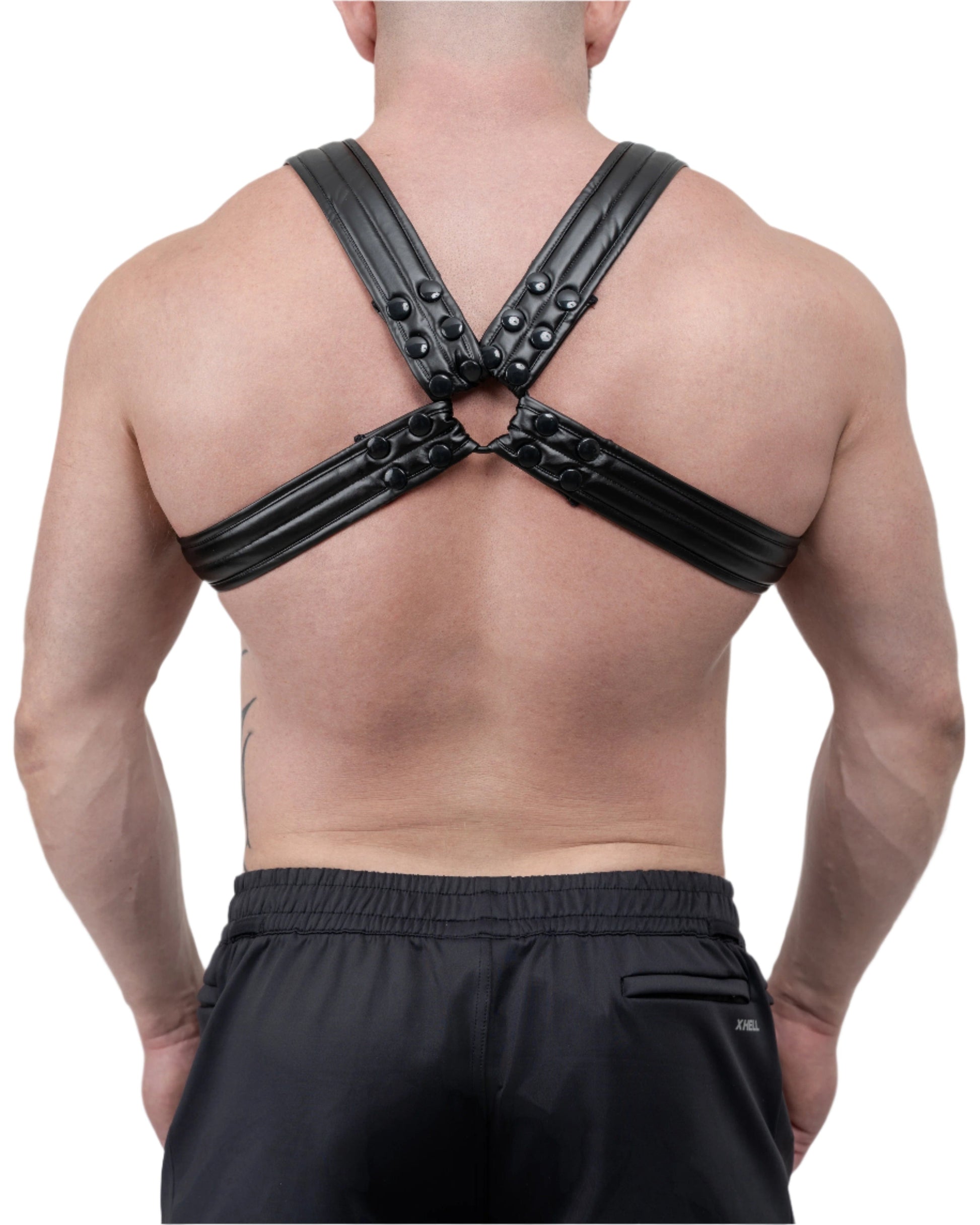 where comfort gets naughty. Wrapped in ultra-soft quilted padding, this sleek black faux leather harness hugs your body while keeping you irresistibly restrained. The bold X-shape screams dominance and desire, while adjustable snap closures ensure a flawless, body-molding fit